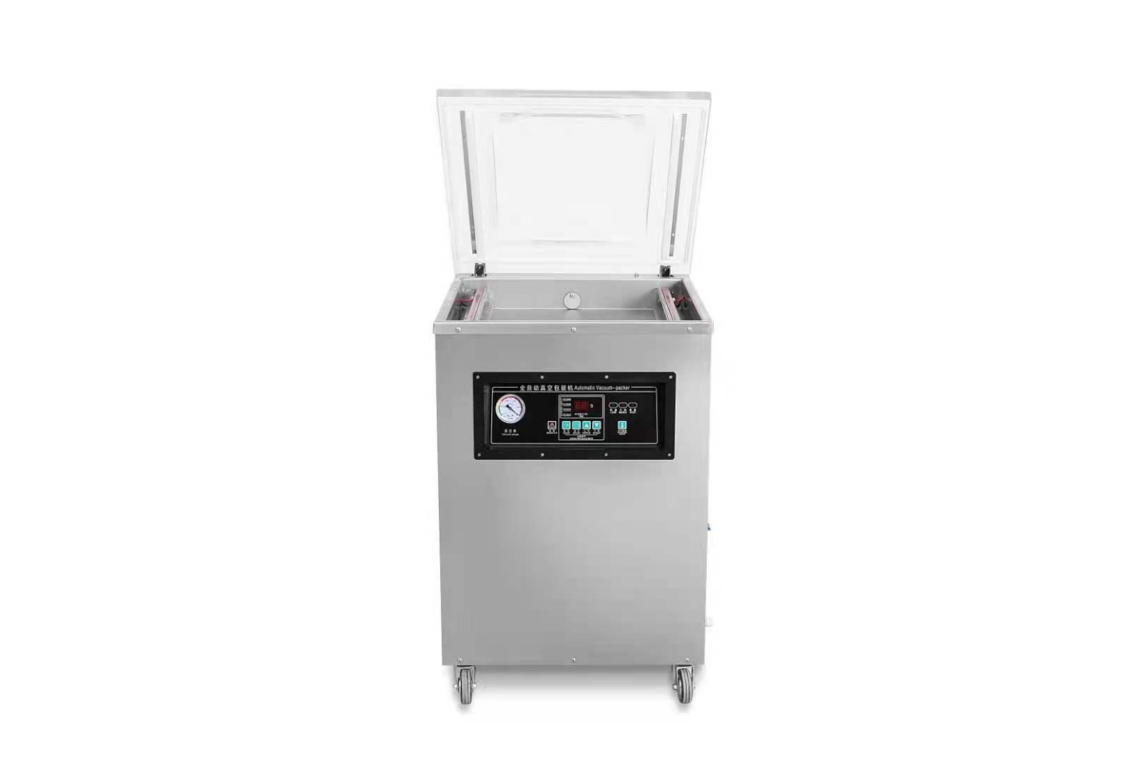 真空包裝機是具有雙真空室的一款高速真空包裝機型產品,有多種型號可以選擇,如:400型、500型、600型等,還有很多不同樣式,如:平板、下凹、傾斜等等,真空包裝機主要是利用食物霉腐變質的原理把微生物(導制食品變質的元素)賴以生存的氧氣抽掉,從而達到,防霉腐及防氧化的功能。